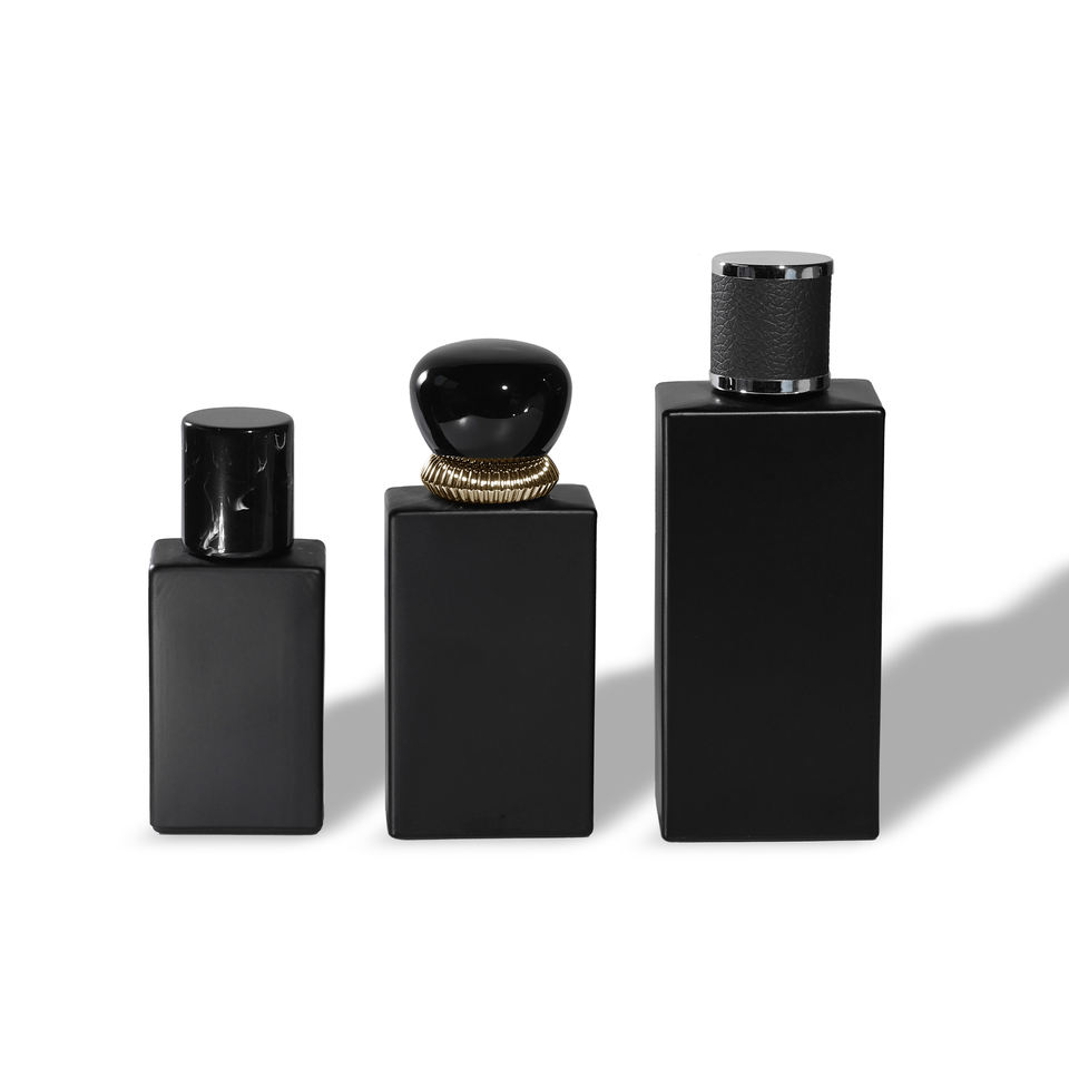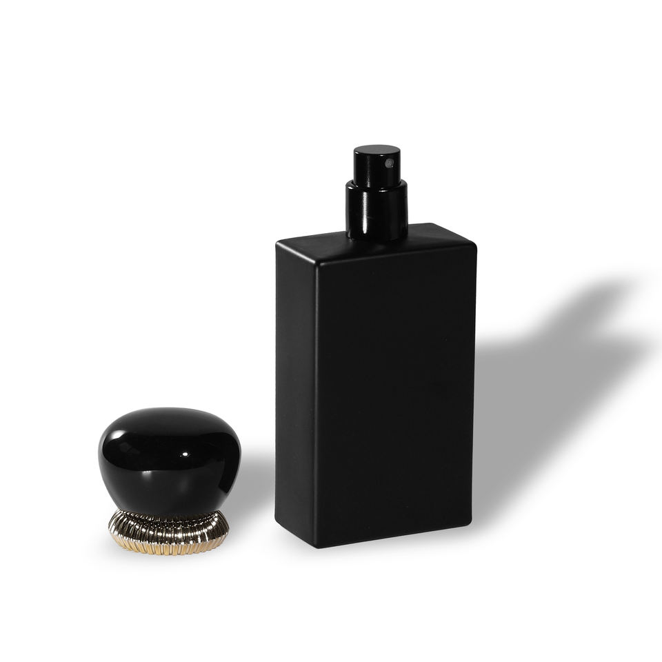 ขวดน้ำหอมทรงสี่เหลี่ยมขนาด50มล. 100มล. ว่าง30มล. พร้อมกล่องสีดำด้านออกแบบโลโก้ได้ตามต้องการ