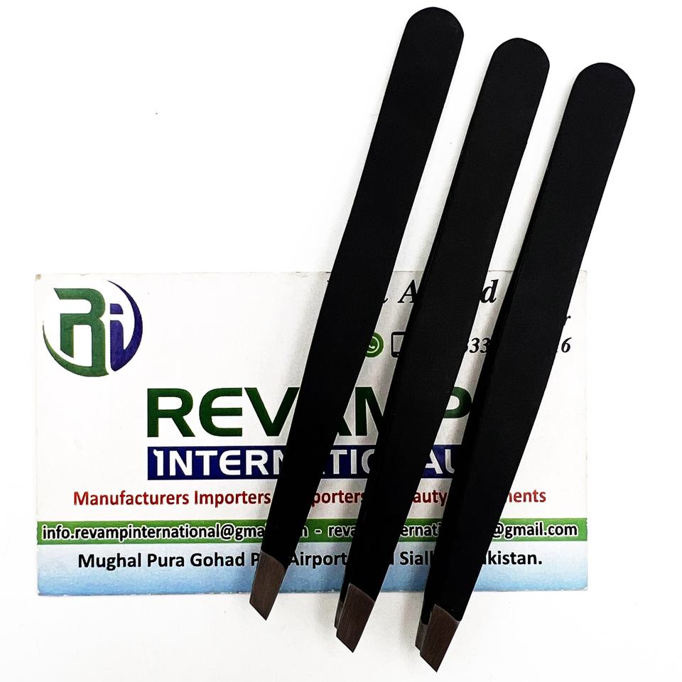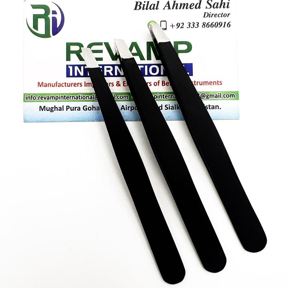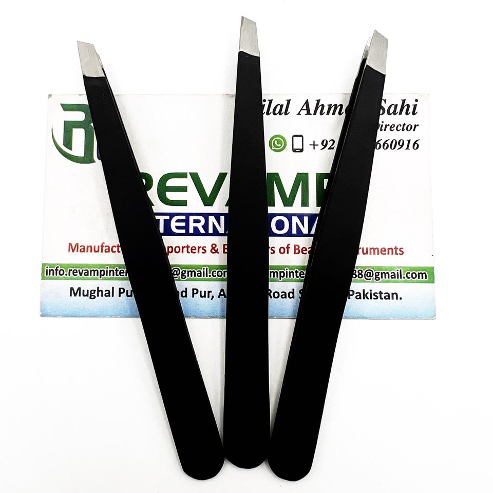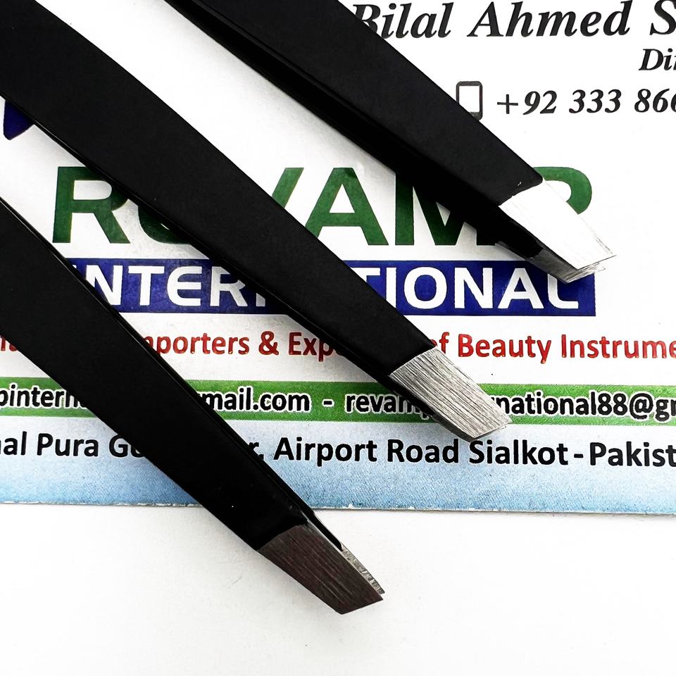 แหนบต่อขนคิ้วสแตนเลสสีดำด้าน เป็นมิตรกับสิ่งแวดล้อม เคลือบผง ทนทาน ปลายเฉียง