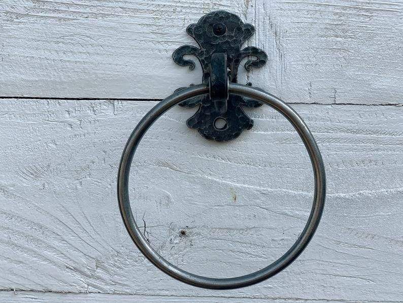 ห่วงแขวนผ้าขนหนูเหล็กสีดำด้าน อุปกรณ์ตกแต่งห้องน้ำ ยอดนิยมสำหรับการตกแต่งบ้านสไตล์โมเดิร์นอินดัสเทรียล