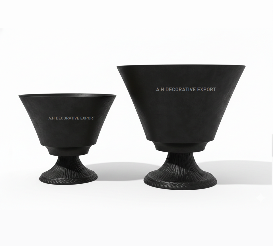 ชุดกระถางต้นไม้ทรงโมเดิร์นสีดำด้านแบบตั้งพื้น | โกศอลูมิเนียมทรงสวย รักษาสิ่งแวดล้อม เหมาะสำหรับใช้ในบ้านและสวน | รูปทรงตัววีแบบมินิมอลร่วมสมัย