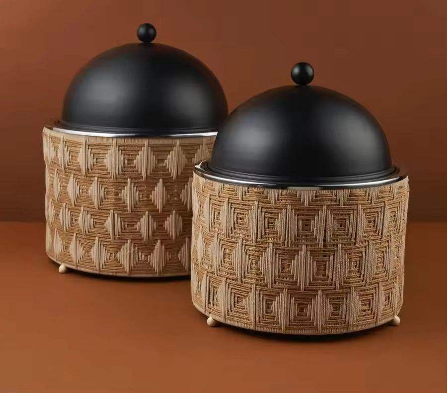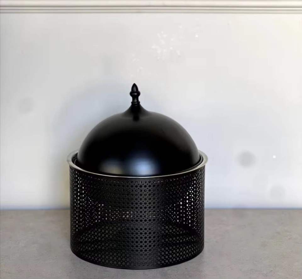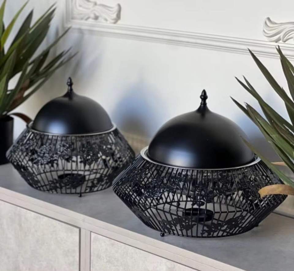 ชุดอุ่นอาหารบุฟเฟ่ต์สแตนเลสสีดำด้าน พร้อมฝาโดมแบบมีรูระบายอากาศ สำหรับงานจัดเลี้ยง