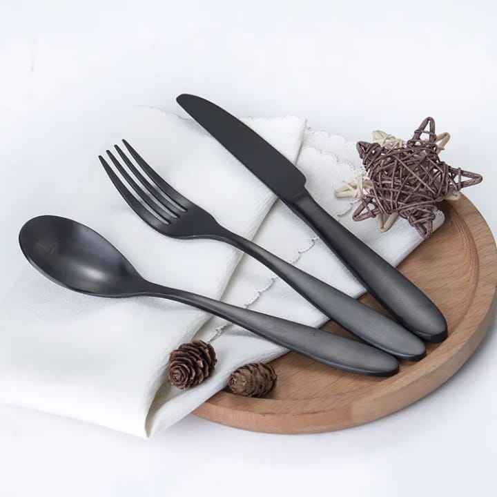ชุดช้อนส้อมสแตนเลสสีดำด้าน ชุดมีดส้อมช้อนทันสมัย ชุดอุปกรณ์รับประทานอาหารบนโต๊ะอาหาร ชุดอุปกรณ์ครัว