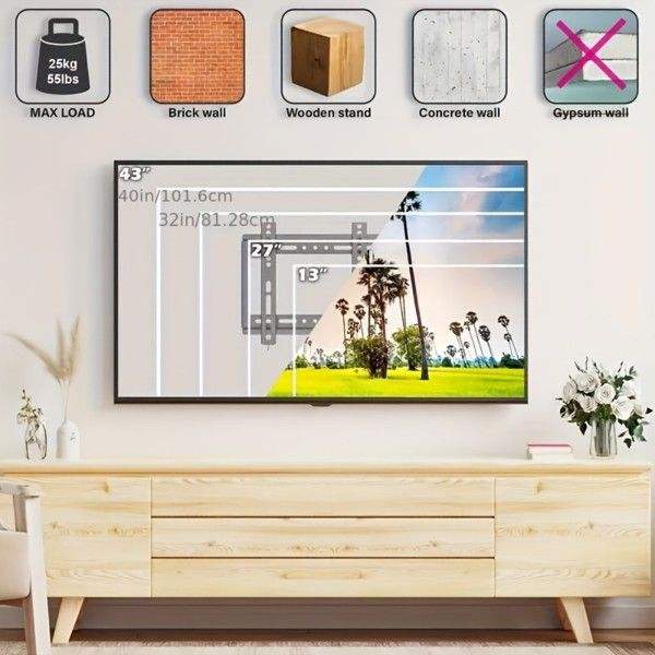 Matte Black Universal TV Bracket Classic Low Profile Wall Mount for 26\"-65\" TVs Easy Mounting in Black
