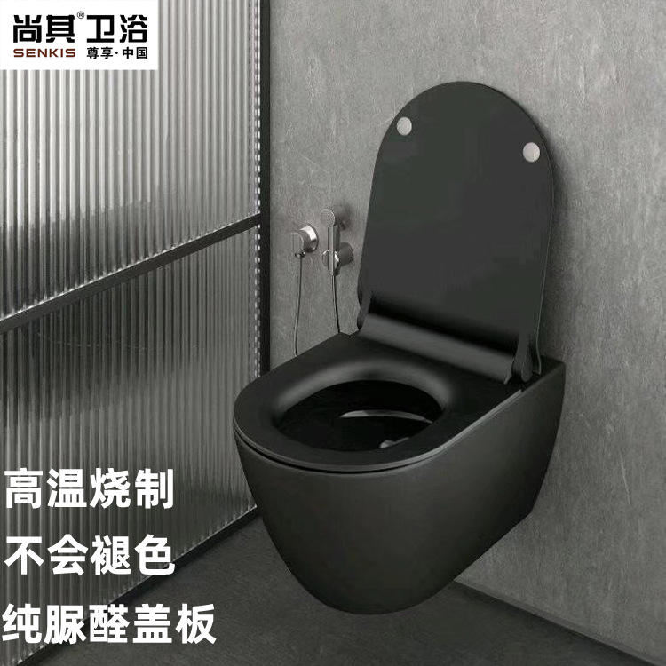 ห้องน้ำติดผนังสีดำด้านพร้อมถังเก็บน้ำแบบซ่อนสีดำ