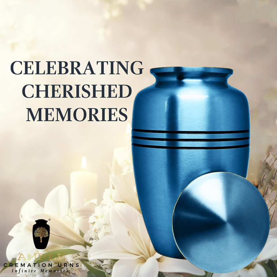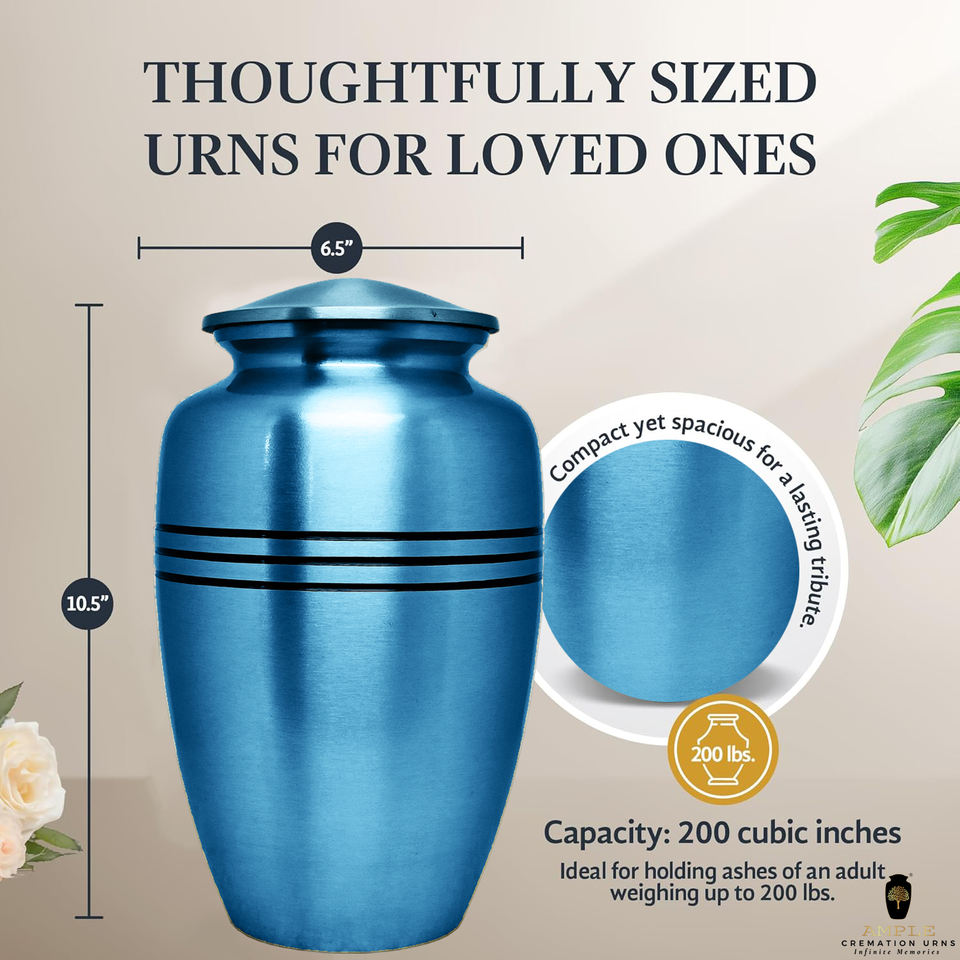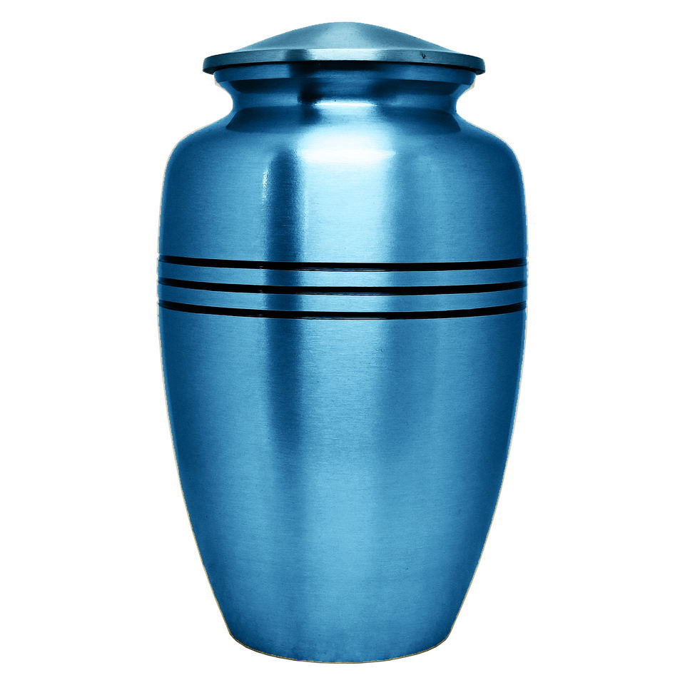 โกศบรรจุอัฐิสีน้ำเงินด้านแบบโลหะสำหรับบรรจุเถ้ากระดูกมนุษย์ | โกศบรรจุอัฐิสำหรับผู้ใหญ่สมัยใหม่ สีดำ ลายเส้น รักษ์โลก ปรับแต่งได้ | 220 ลูกบาศก์