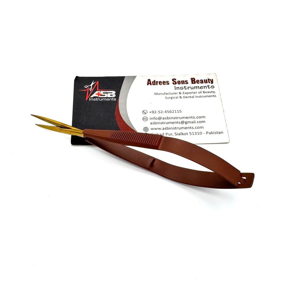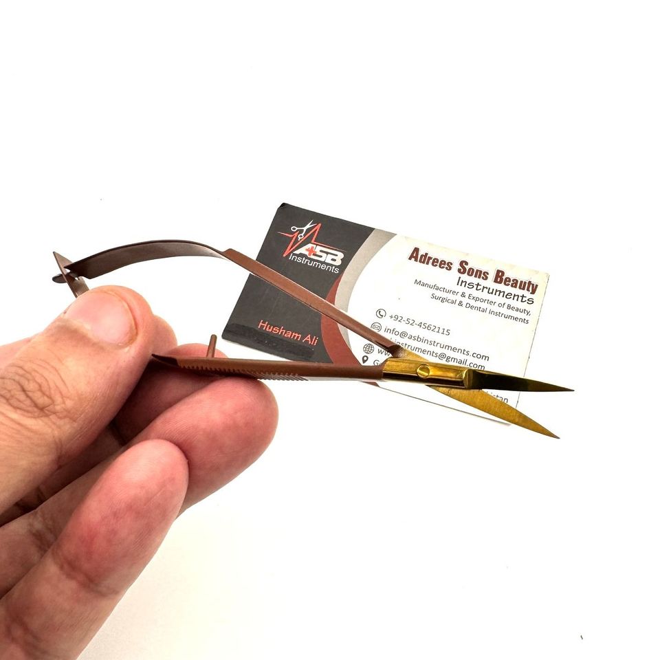 กรรไกรสปริงใบมีดโค้งตรงสำหรับทำเล็บมือแบบรัสเซียสีน้ำตาลทอง