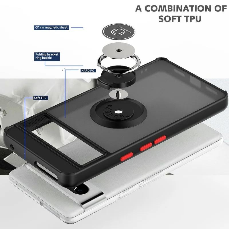 เคสแบบด้านสำหรับ Google Pixel 8 7 6 Pro 8A พร้อมขาตั้งวงแหวนหมุนได้ 360 องศา ป้องกันการกระแทก ฝาครอบโทรศัพท์มือถือแบบแม่เหล็ก