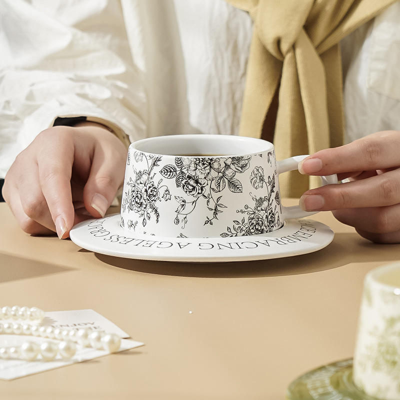 ชุดแก้วกาแฟเซรามิกเคลือบด้าน 250 มล. ลายกุหลาบวินเทจ พร้อมกล่องของขวัญสำหรับมอบเป็นของขวัญ