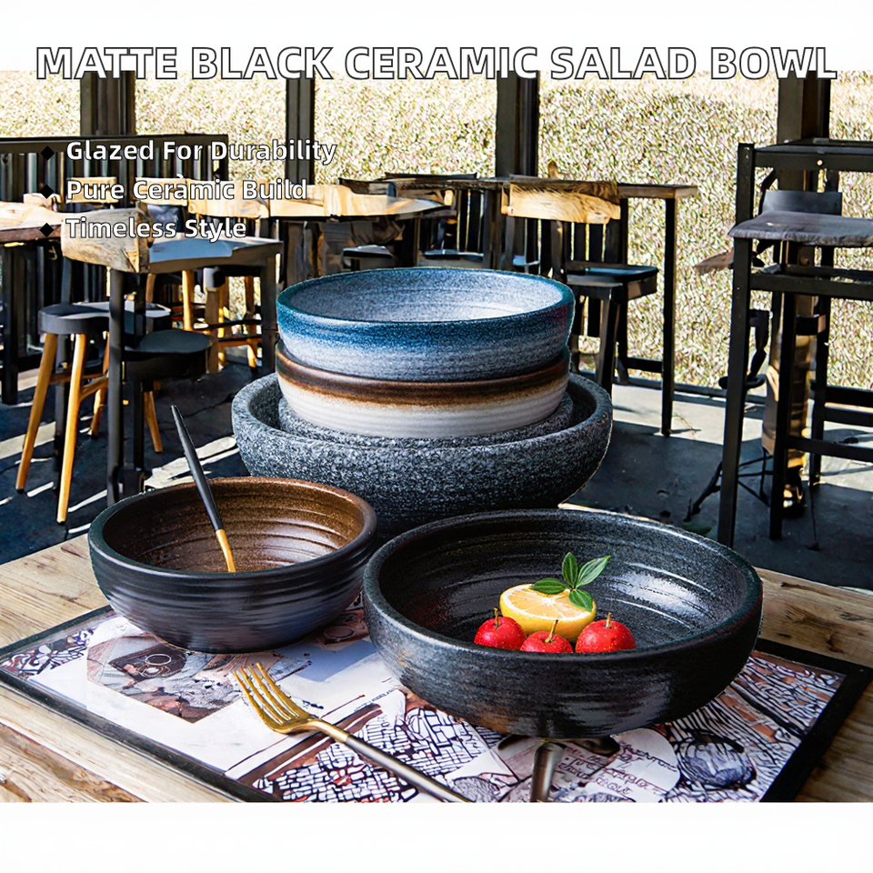 ชามไม้สีดำแบบใช้แล้วทิ้ง สไตล์ญี่ปุ่น สำหรับสลัด บะหมี่ลามิ่น ลายสาดหมึก สำหรับร้านอาหาร 8iwood