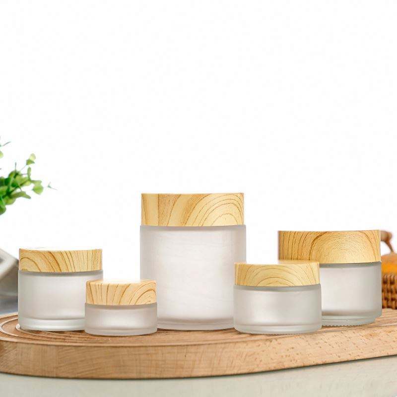 ขวดครีมแก้วพร้อมฝาไม้ไผ่และพลาสติก
