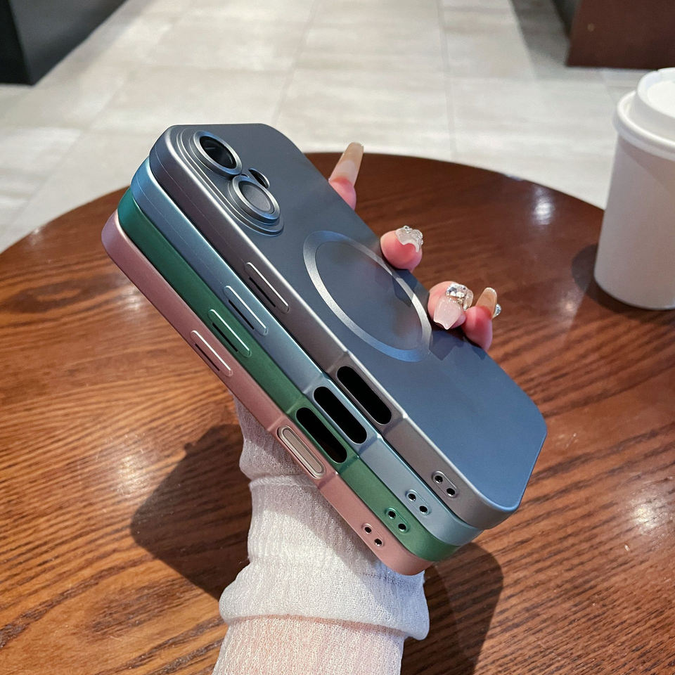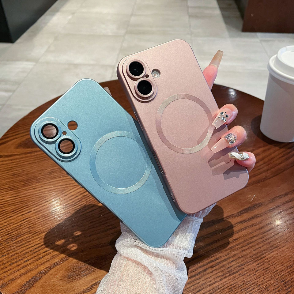 เคสโทรศัพท์ TPU แบบนิ่มระบบแม่เหล็กสีด้านสำหรับ iPhone 16 PLUS 15 14 PRO MAX 13พร้อมฟิล์มเลนส์
