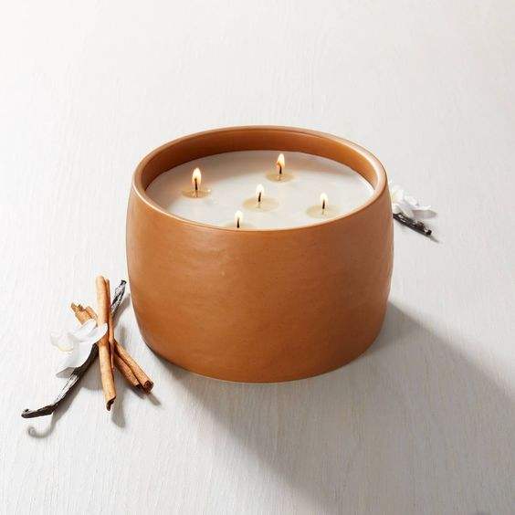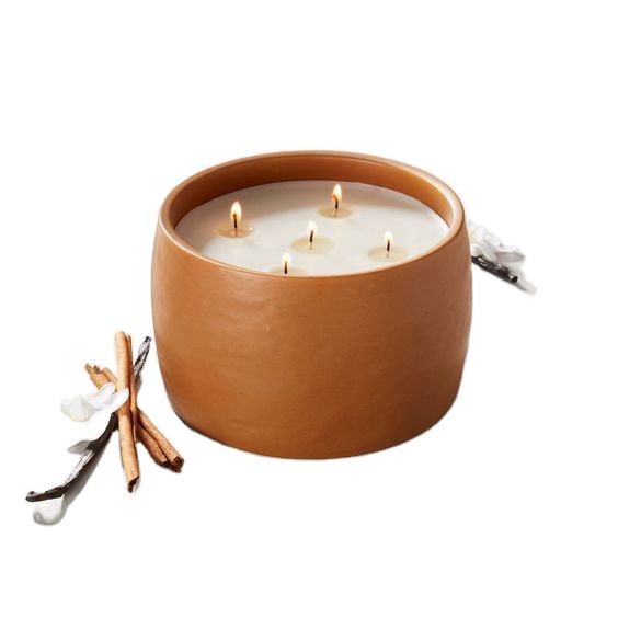 Matte Orange Fining Metal Decorative Round Candle Bowl Home Decor Table Top New Design Candle Vessel