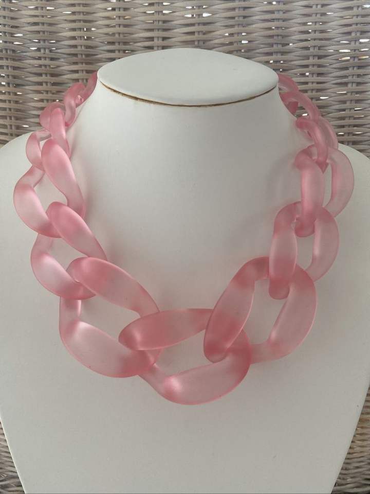Matte Pink Plastic Chain Necklace Small Link Acrylic Resin Choker Statement Jewelry Women Minimalist Neck Apparel Accessory