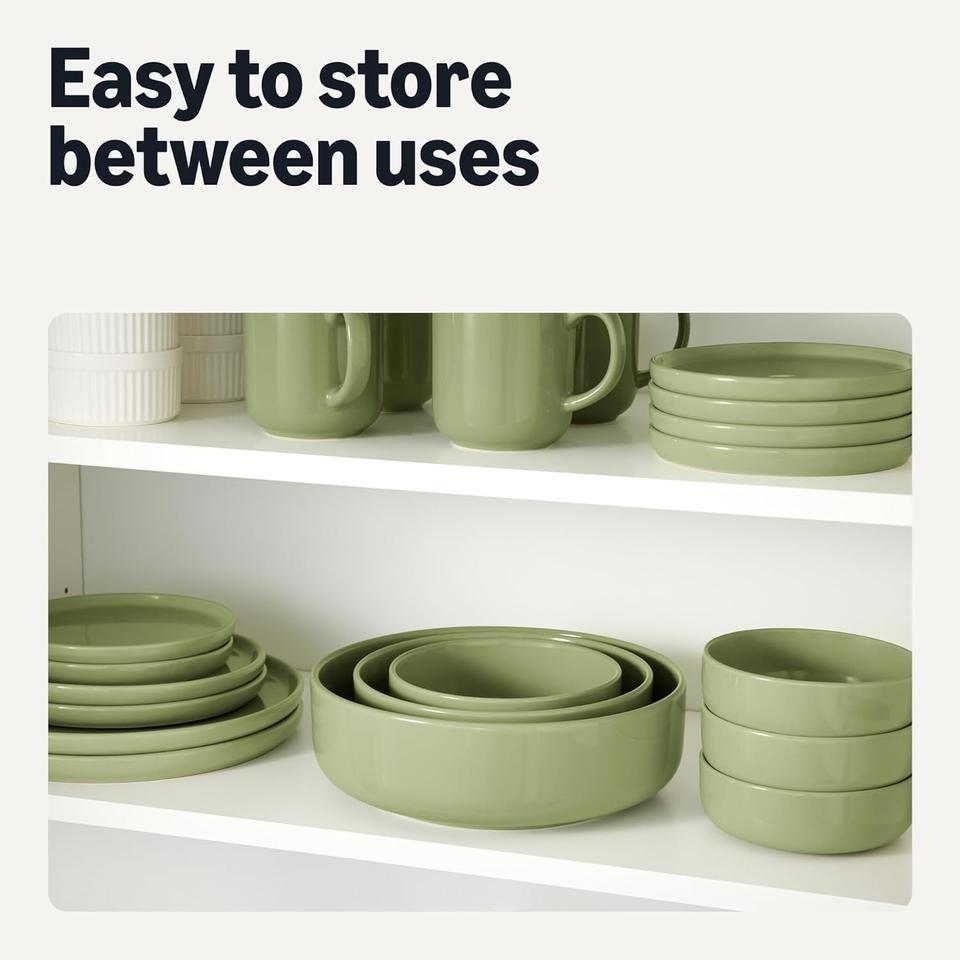 จานเซรามิกสีเขียวพิสตาชิโอแบบด้าน ดีไซน์เรียบหรู ผิวสัมผัสเรียบเนียน วางซ้อนกันได้ ทนทาน คุณภาพดีสำหรับการรับประทานอาหารสมัยใหม่