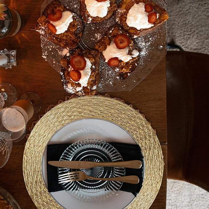 จานรองชาร์จเจอร์สีโรสโกลด์ด้าน หรูหรา สำหรับงานเลี้ยง งานจัดเลี้ยง และงานอีเว้นท์ต่างๆ