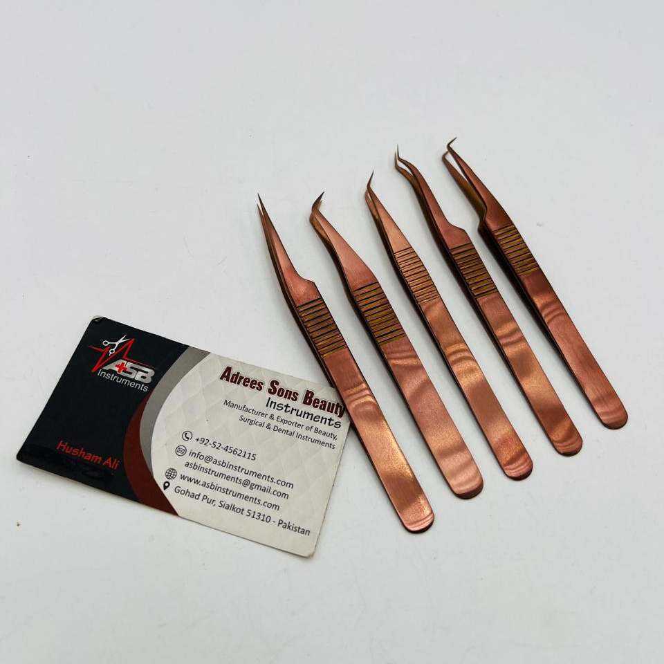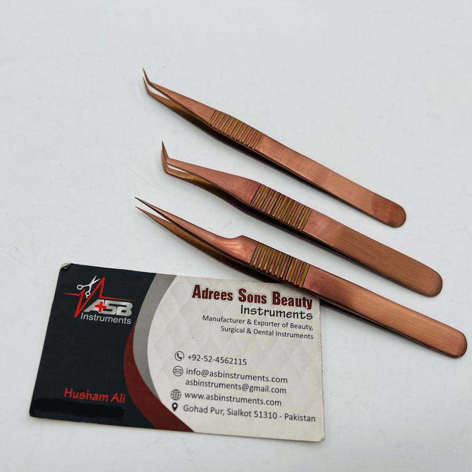 แหนบต่อขนตาสีโรสโกลด์ด้าน สแตนเลส สกรีนโลโก้ตามสั่ง จับถนัดมือ บริการ OEM