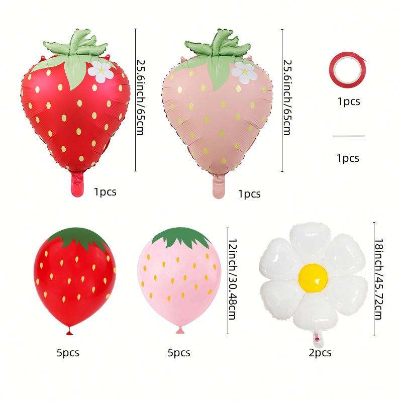 ชุดลูกโป่งฟอยล์อลูมิเนียมเคลือบรูปสตรอเบอร์รี่ใหม่จัดธีมผลไม้ฮาโลวีนด้วยดอกไม้ไข่พิมพ์ลายดอกเดซี่