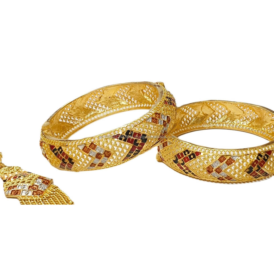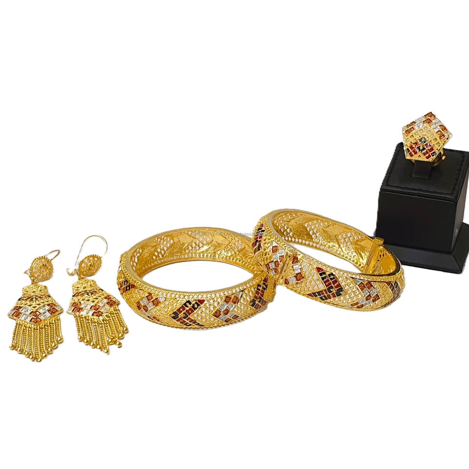 คอลเลกชัน mauritanian 24KT ชุดกำไลชุบทองคุณภาพสูง2ชิ้นพร้อมต่างหูแบบครึ่งราคาขายดีใหม่