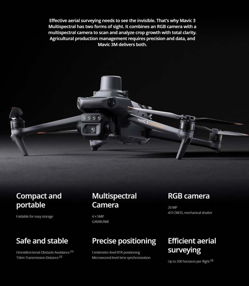 โดรน Mavic 3M รุ่น Global Version Mavic 3 Multispectral M3M พร้อมกล้อง RGB ระบบ RTK สำหรับการตรวจสอบพืชผลและการทำแผนที่ทางการเกษตร