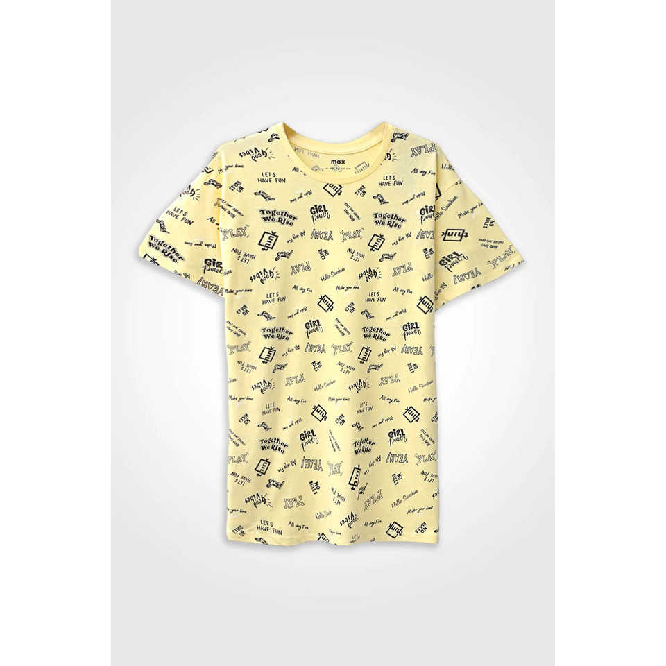 Max Brand เสื้อยืดลายกราฟิกสำหรับผู้หญิงผ้าคอตตอนผ้าคอตตอนระบายอากาศสีเหลืองขนาด XL ปักลายสัตว์แบบหลวมสำหรับฤดูร้อน