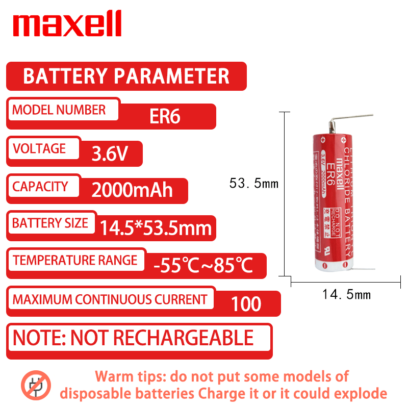 Maxell ER6 3.6V AA 2000mAh แบตเตอรี่ลิเธียมสำหรับ Panasonic Robot Encoder