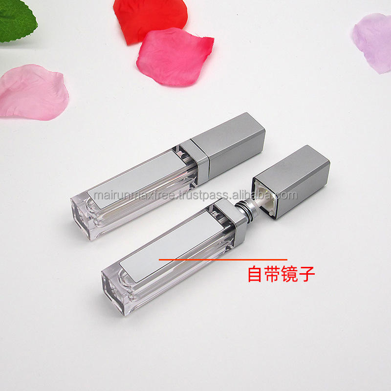 แม็กซ์ฟรี ใหม่มาแรง ขายดี กล่องลิปกลอสสีเงินและสีดำ หลอดลิปกลอสพลาสติกพร้อมไฟ LED และกระจก 7 มล. สำหรับเครื่องสำอาง