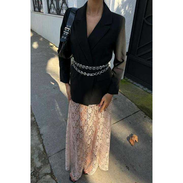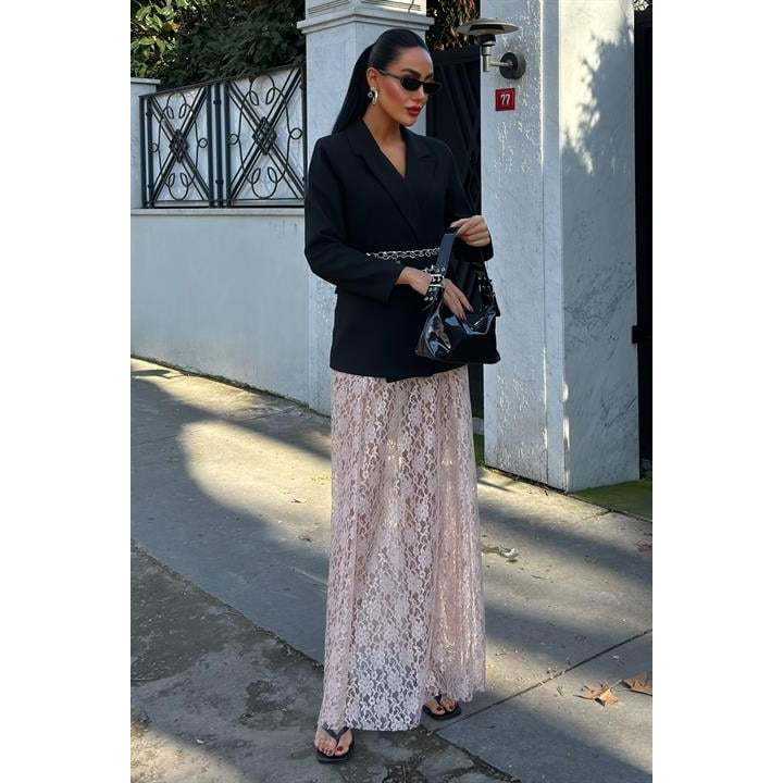 กระโปรงแม็กซี่ชีฟองลูกไม้ 4047 เอวธรรมชาติเนื้อนุ่ม