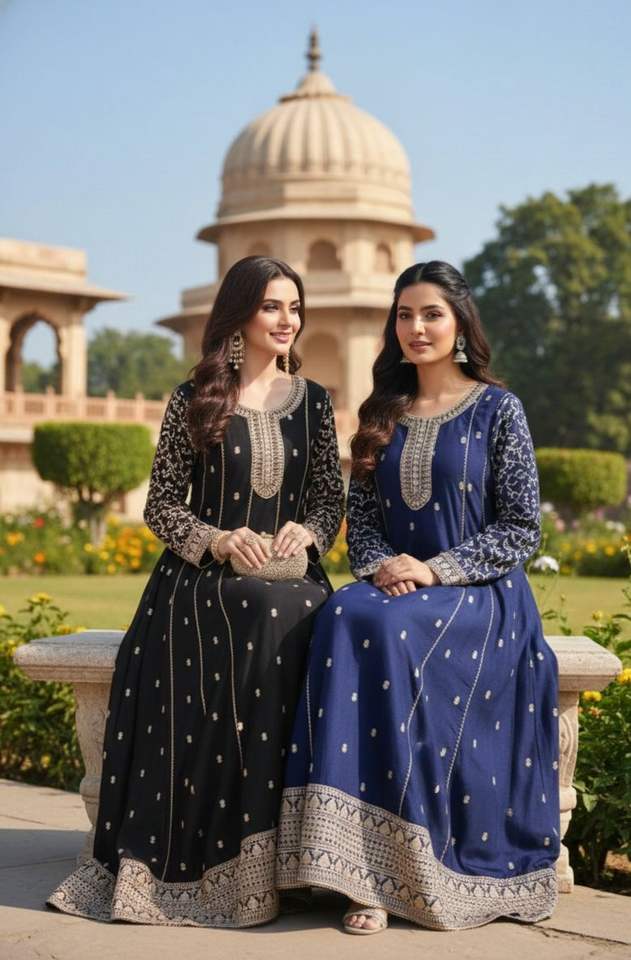 ชุดแม็กซี่พรีเมียมนำเข้า คอเสื้อผ้าไหมแท้ พร้อมงานปักประดับด้วยหินอย่างประณีต ตกแต่งด้วยดิ้นทอง พร้อมกางเกงและผ้าคลุมไหล่