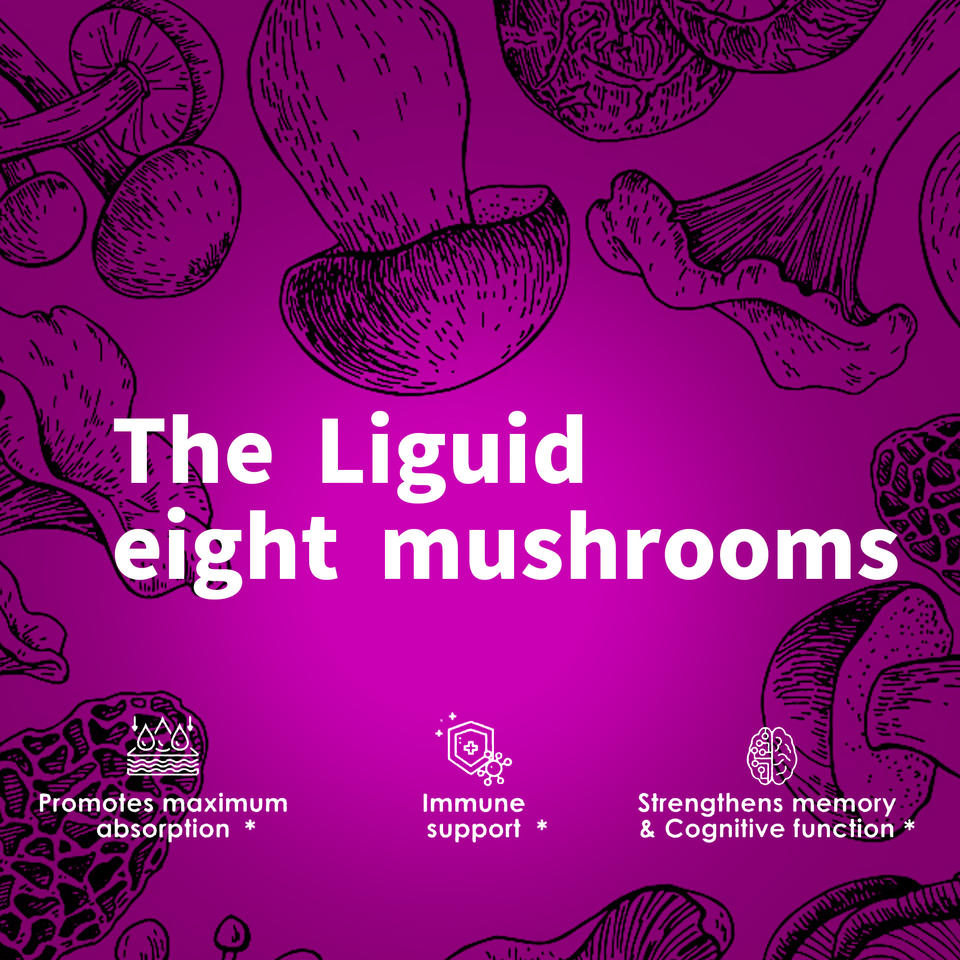 แดง reishi, คอร์ไดเซป, Chaga, แผงคอสิงโต, เห็ดชิตาเกะ, หางไก่งวง, ไมตาเกะ, Agaricus Blazei Murrillส่วนผสมหลัก