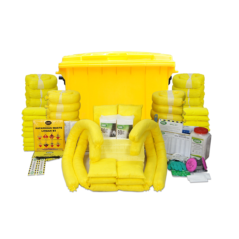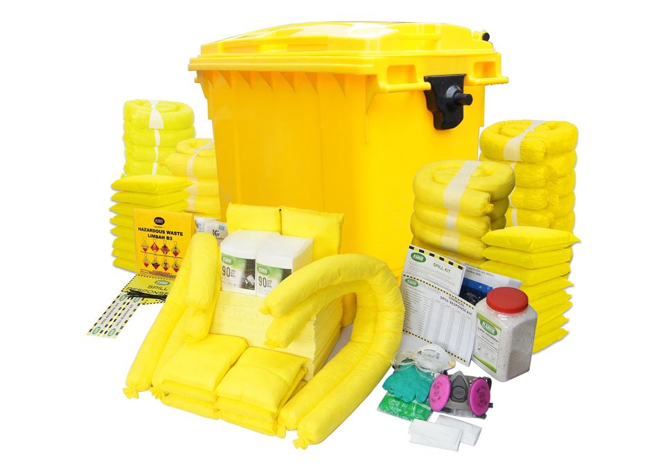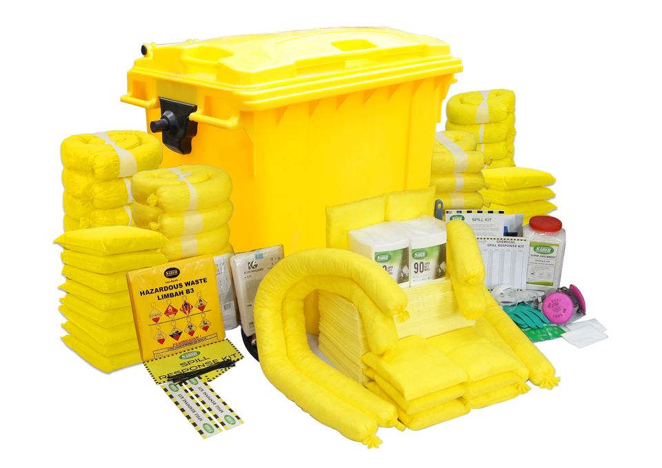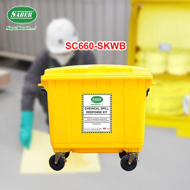 ชุดอุปกรณ์ดูดซับสารเคมี SABER ขนาด 660 ลิตร พร้อมถังเก็บแบบมีล้อ ชุดอุปกรณ์ป้องกันส่วนบุคคล (PPE) ครบชุด และสต็อกสินค้าสูงสำหรับเทอร์มินัลและดีโป