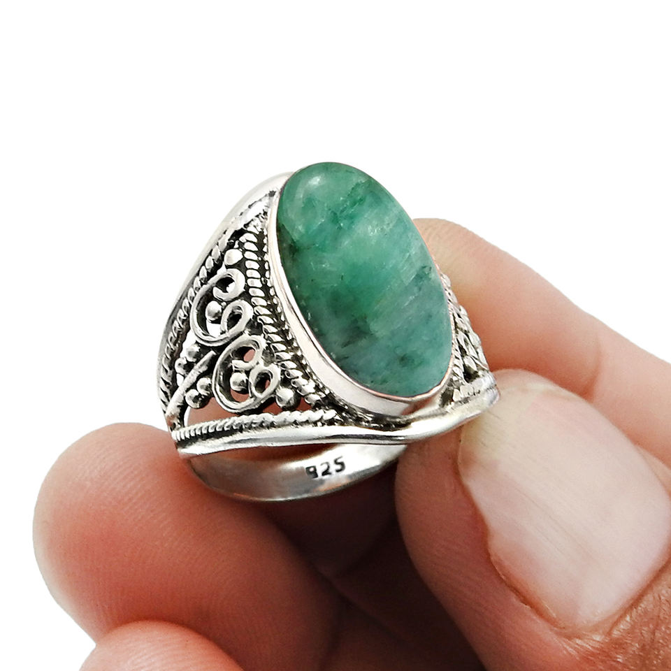 พฤษภาคมกำเนิดเครื่องประดับ925สเตอร์ลิงเงินธรรมชาติอัญมณีมรกตสไตล์คลาสสิกแหวน Boho สำหรับผู้หญิงเด็กผู้หญิงเครื่องประดับทำด้วยมือ