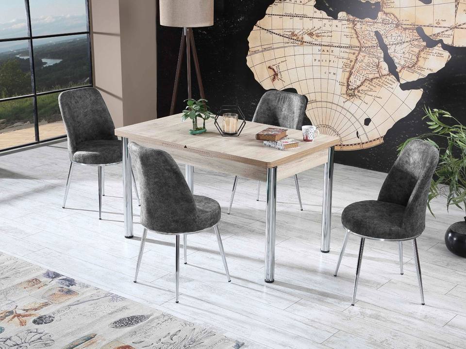 Dining Table and Chair Set 6-Seater Modern Luxury Wooden Expandable Rectangle Metal Legs High Quality Economically Priced