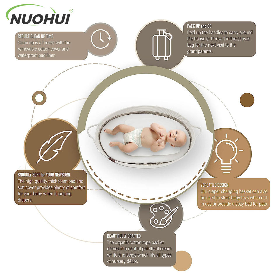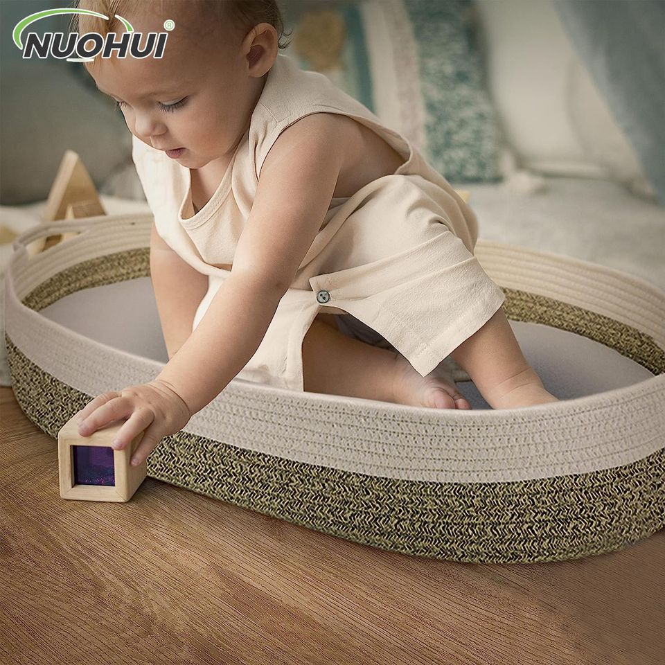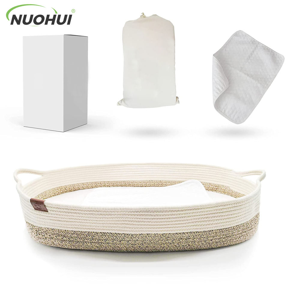 ตะกร้าเปลี่ยนผ้าอ้อมเด็กแบบพับได้ รุ่นเมย์ดาว โมเดิร์น ซิมเพิล ทำจากเชือกฝ้าย พร้อมหูหิ้ว สำหรับเด็กแรกเกิด ขนาด 76x40x13 ซม. สามารถสั่งทำได้