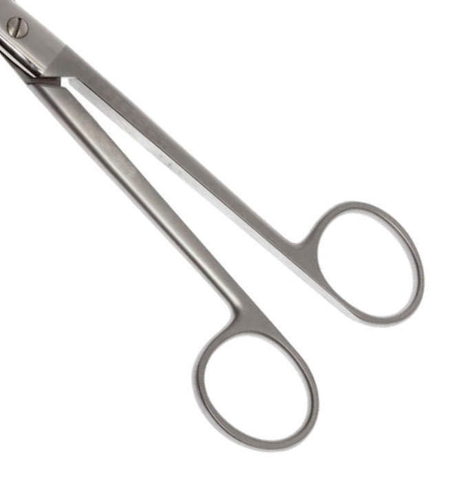 made of stainless steel with a blunt tip to prevent accidental injury and a serrated edge for efficient cutting of bandages dressings and clothing