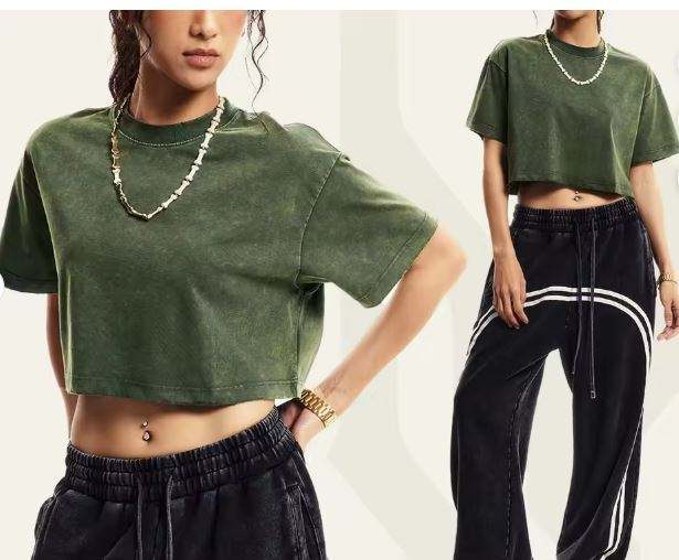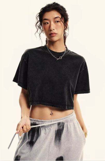 เสื้อครอปท็อปผู้หญิง Maysun 230gsm ผ้าฝ้าย 100% สไตล์วินเทจ ลุคย้อนยุค ซักย้อมสีเอซิด สำหรับฤดูร้อน คุณภาพสูง