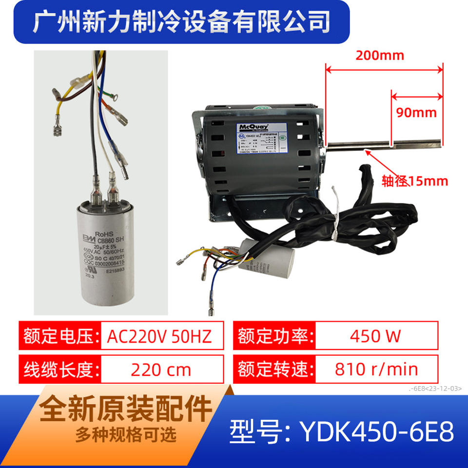 มอเตอร์พัดลมในอาคาร McQuay YDK450-6E8 220V แบบเฟสเดียว อะซิงโครนัส สำหรับเปลี่ยนเครื่องปรับอากาศแบบรวมศูนย์