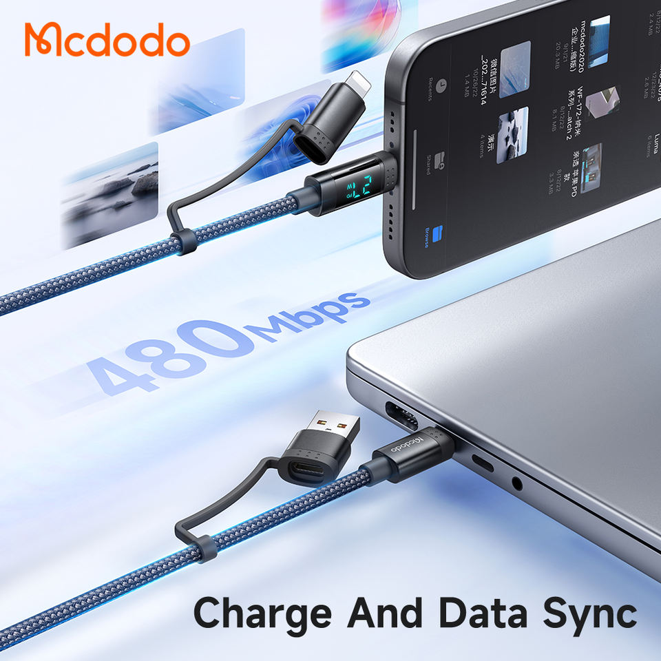 สายดาต้า Mcdodo 199 PD 60W 4 in 1 แบบ Type-C USB รองรับ Quick Charge AFC QC ความยาว 1.2 เมตร ชาร์จเร็ว สำหรับ iPhone Android และแล็ปท็อป