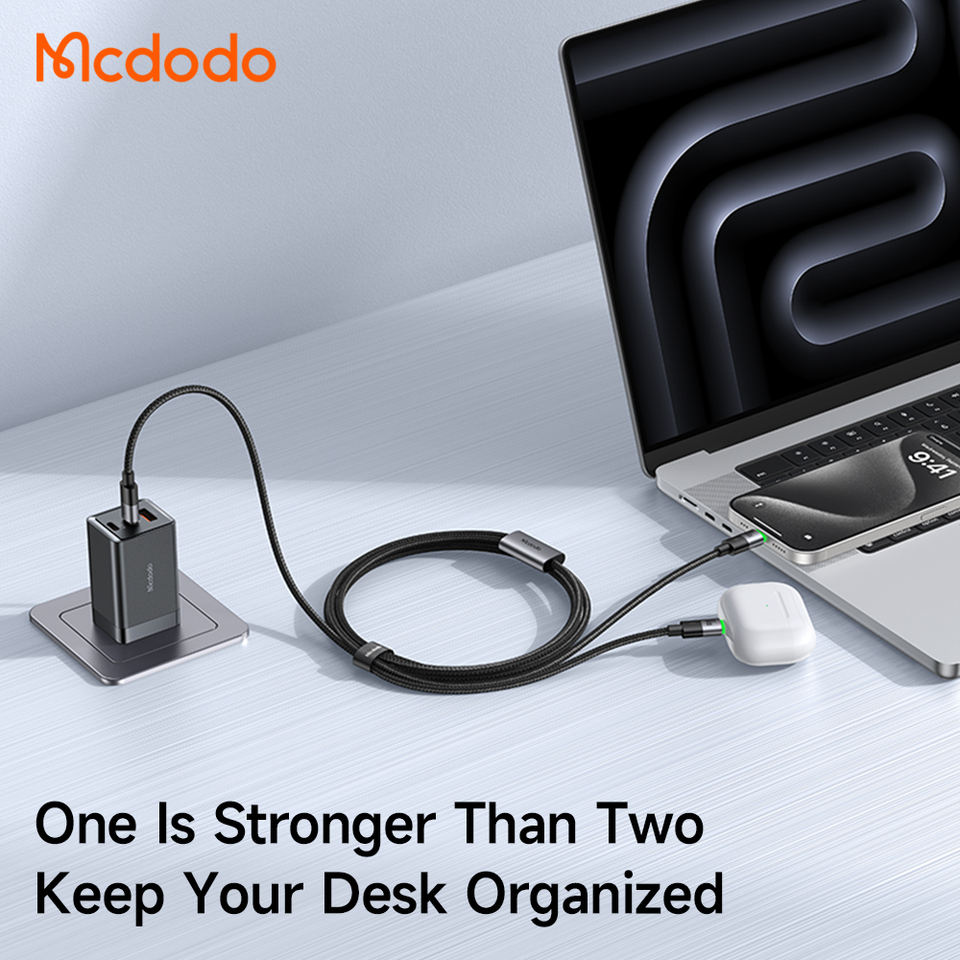 สายชาร์จ Mcdodo 670/674 100W USB-C 2 in 1 ชาร์จเร็ว สาย USB-C to USB แบบสมาร์ท 1.5 เมตร พร้อมไฟ LED สำหรับ iPhone และ Android