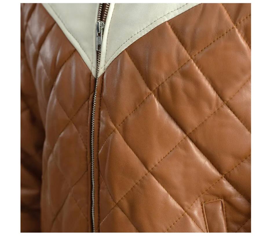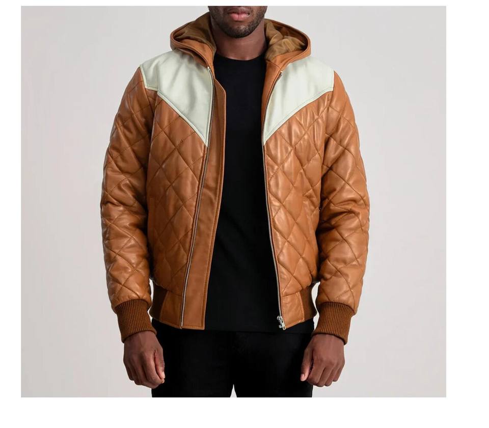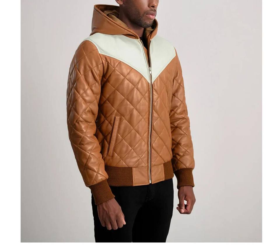 แจ็คเก็ตขนเป็ดมีฮู้ดหนังแกะแท้