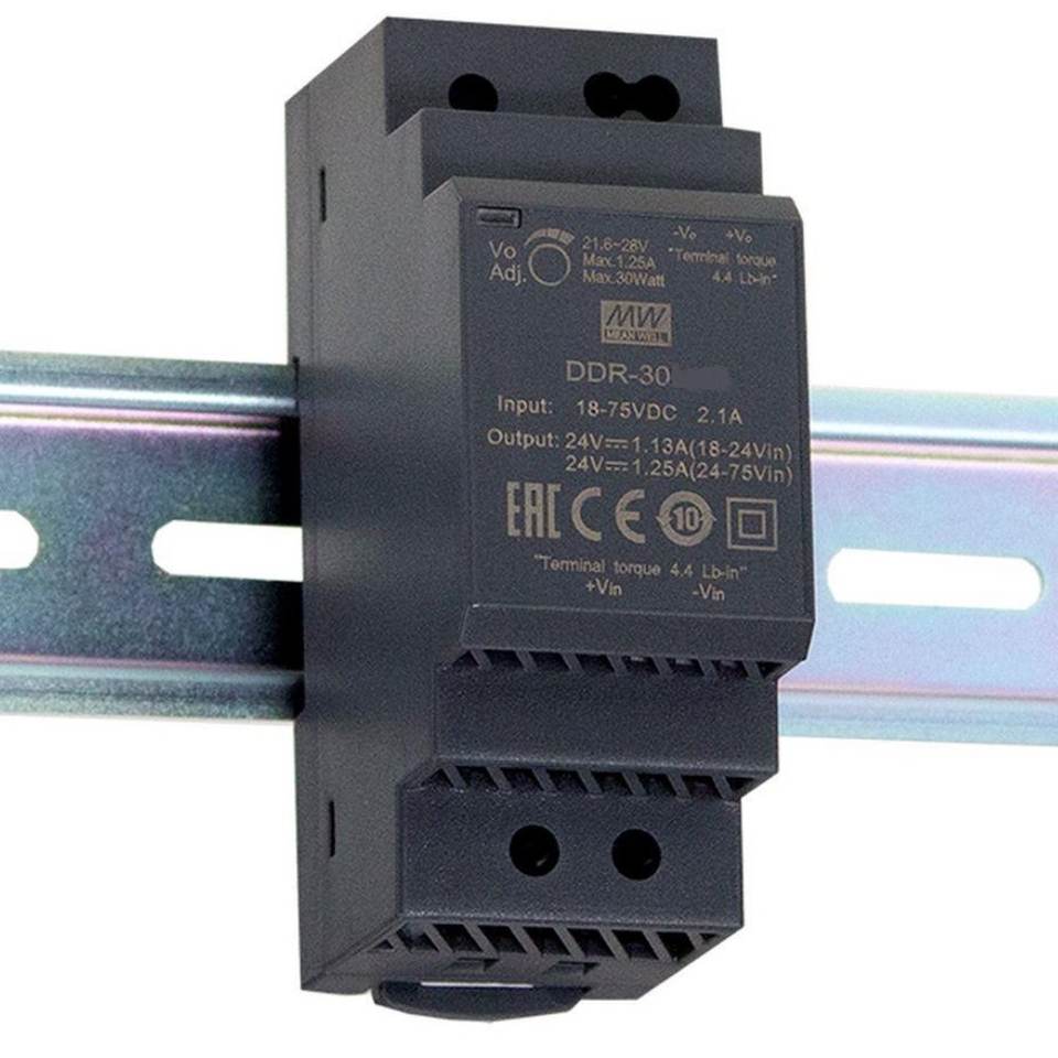 มีนเวลล์ DDR-30L-5 ตัวแปลงไฟ DC-DC 18-75VDC อินพุต 5VDC เอาต์พุต 6A แรงดันไฟฟ้าปรับได้ ติดตั้งบนราง DIN อุปกรณ์จ่ายไฟอุตสาหกรรม