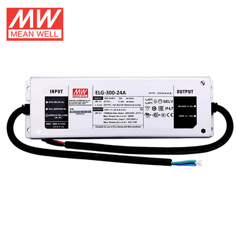 ไดรเวอร์ LED Mean Well รุ่น ELG-300 ซีรีส์ 300W กระแสคงที่/แรงดันคงที่ หรือ กำลังไฟคงที่ 12V/24V IP67 สำหรับไฟส่องสว่างในห้องโถง