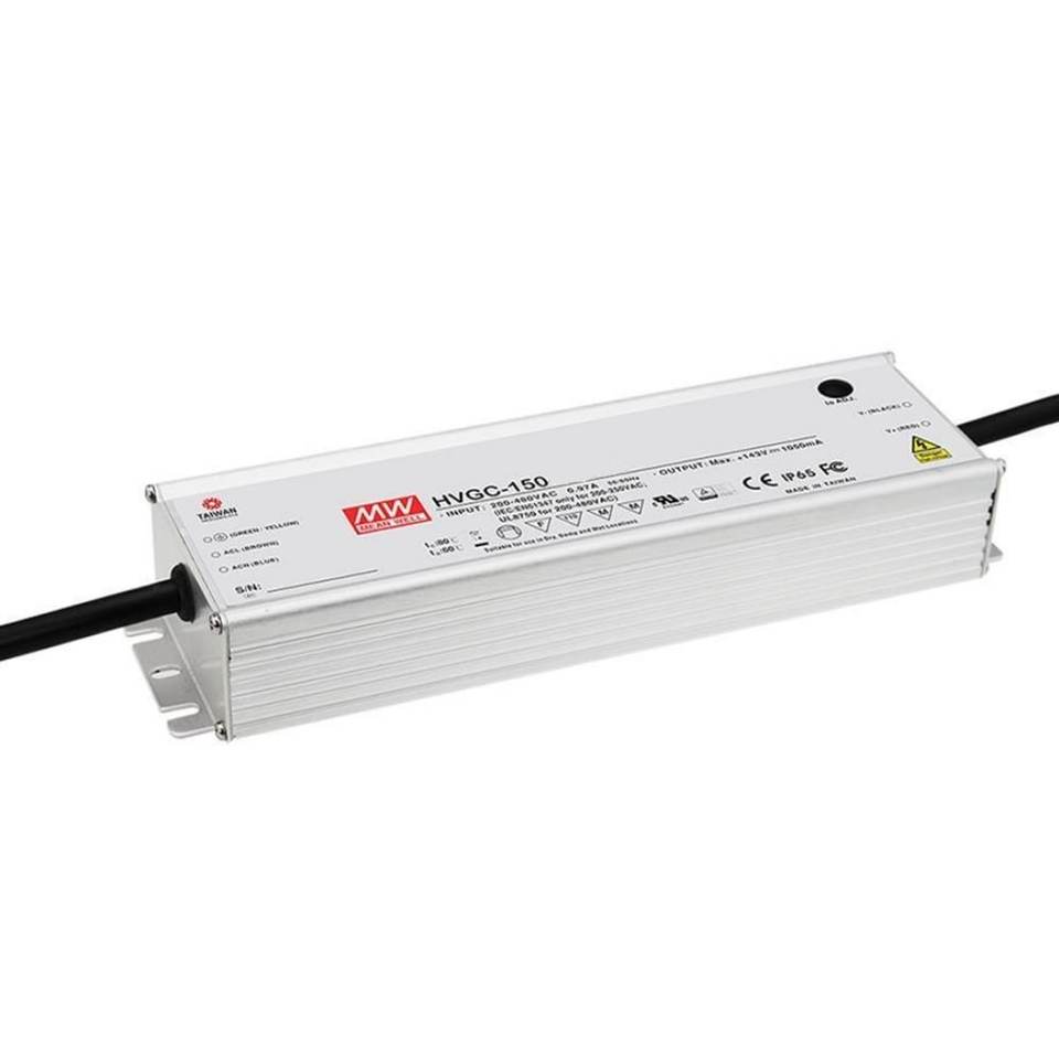 ไดรเวอร์ LED Mean Well HvGC-150 กระแสคงที่ 1050 มิลลิแอมป์ แรงดันไฟฟ้าขาเข้า 200-480 โวลต์ AC ช่องสัญญาณเดียว ตัวเรือนโลหะ