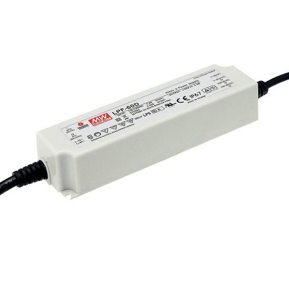 ไดรเวอร์ LED Mean Well Lpf-60D 60W 20V 3A กระแสคงที่ ปรับหรี่แสงได้ IP67 สำหรับใช้งานกลางแจ้ง รับประกัน 5 ปี