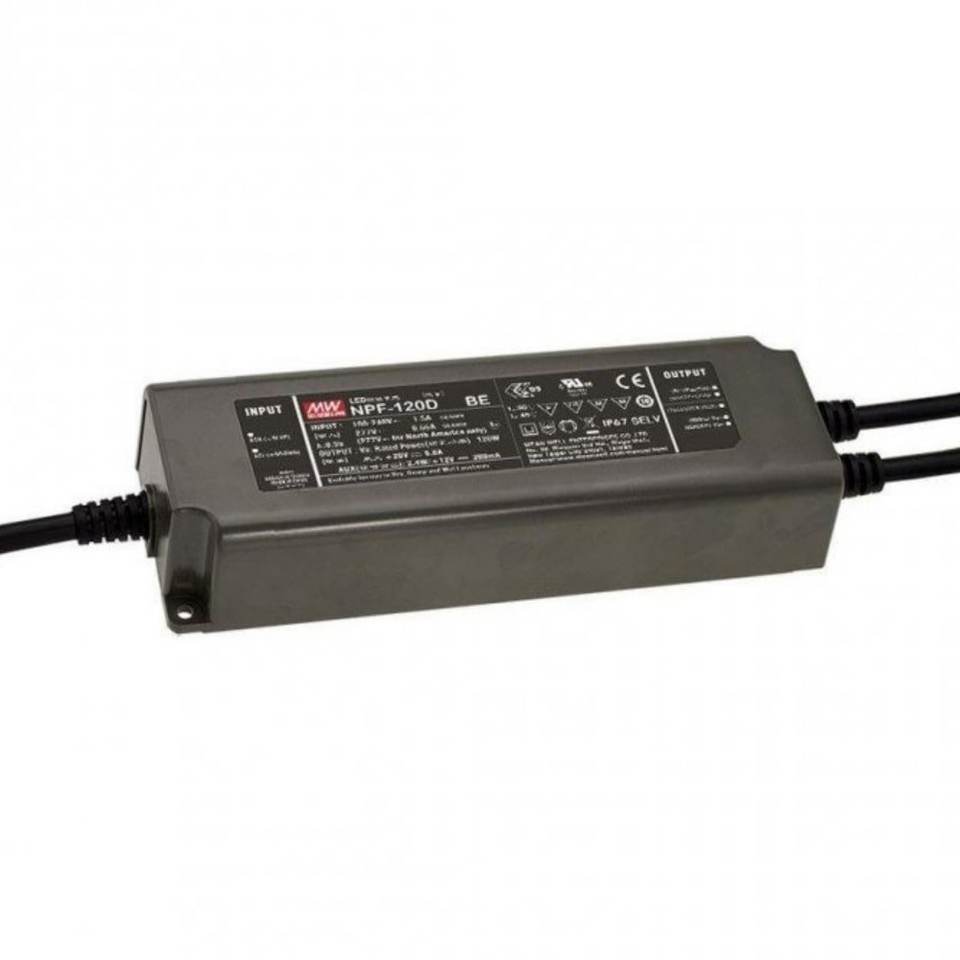 ไดรเวอร์ LED Mean Well รุ่น NPF-120D-15BE กำลังไฟ 120 วัตต์ 8 แอมป์ แรงดันคงที่ ปรับหรี่แสงได้ ช่องสัญญาณเดียว แปลงไฟ AC เป็น DC