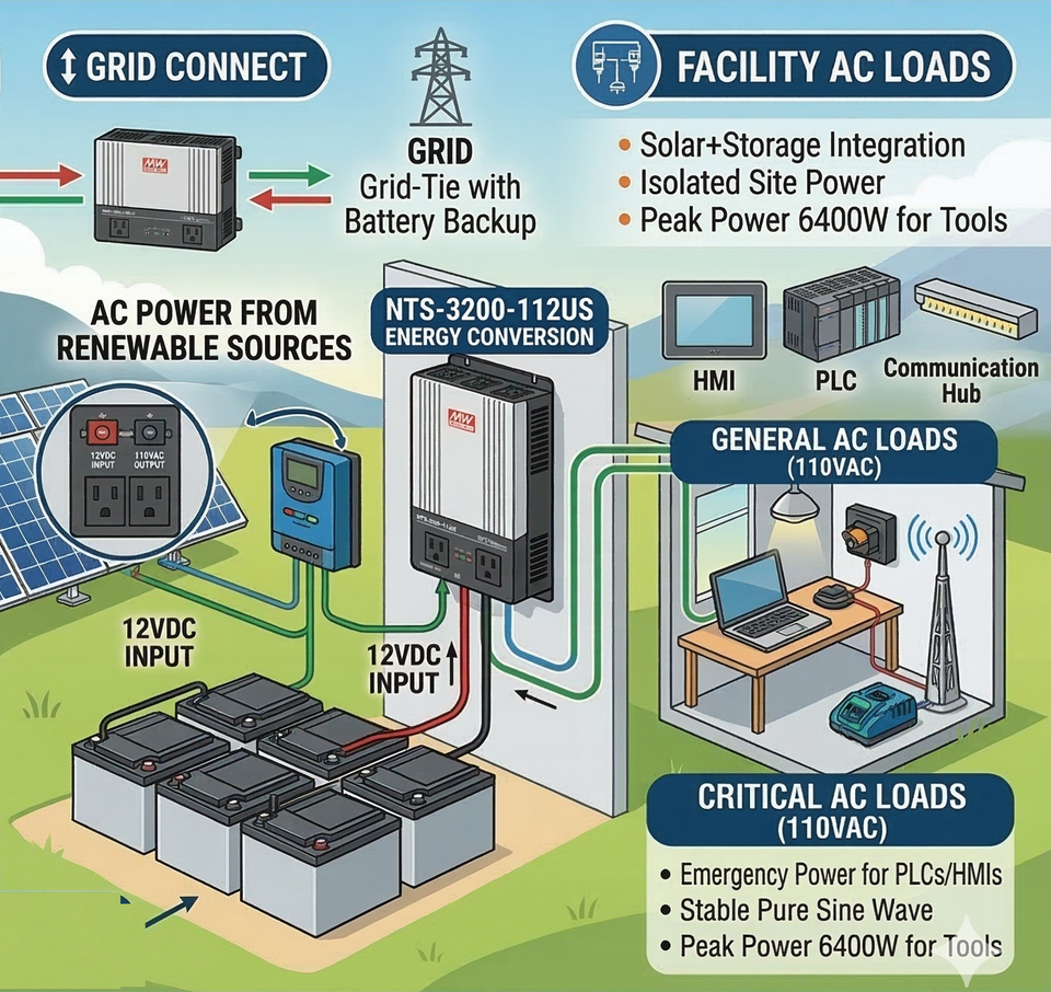 อินเวอร์เตอร์ Mean Well NTS-1700-212 กำลังไฟ 1700 วัตต์ แบบออฟกริด คลื่นไซน์แท้ DC-AC 12 โวลต์ ความน่าเชื่อถือสูง