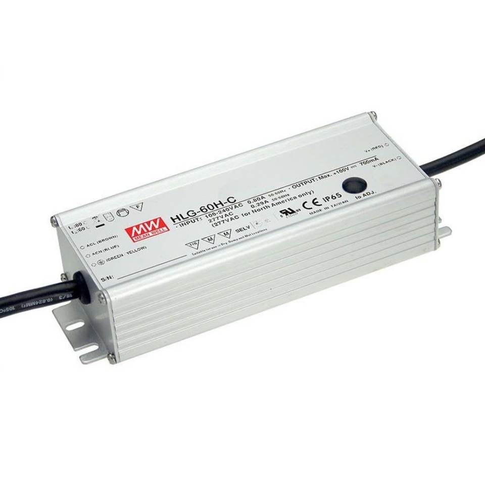 Meanwell ไฟ LED HLG-60H-C700D 60W 750mA ไดรเวอร์แบบช่องสัญญาณเดียวไฟกระแสสลับหรี่แสงได้