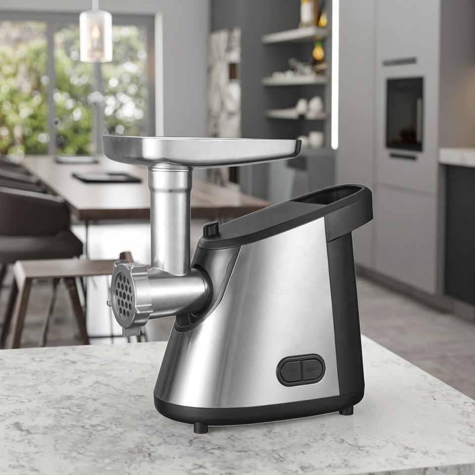 เครื่องบดเนื้อเครื่องบดเนื้อทรงพลังพร้อมใบมีดสแตนเลสสำหรับเตรียมไส้กรอกเนื้อและเคบับ