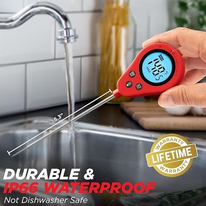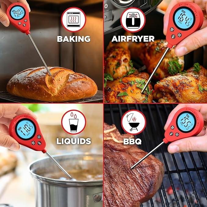 เครื่องวัดอุณหภูมิเนื้อสัตว์ เครื่องวัดอุณหภูมิอาหารแบบดิจิตอลสำหรับทำอาหาร ปิ้งย่าง ขนมปัง และหม้อทอดไร้น้ำมัน อุปกรณ์ครัว