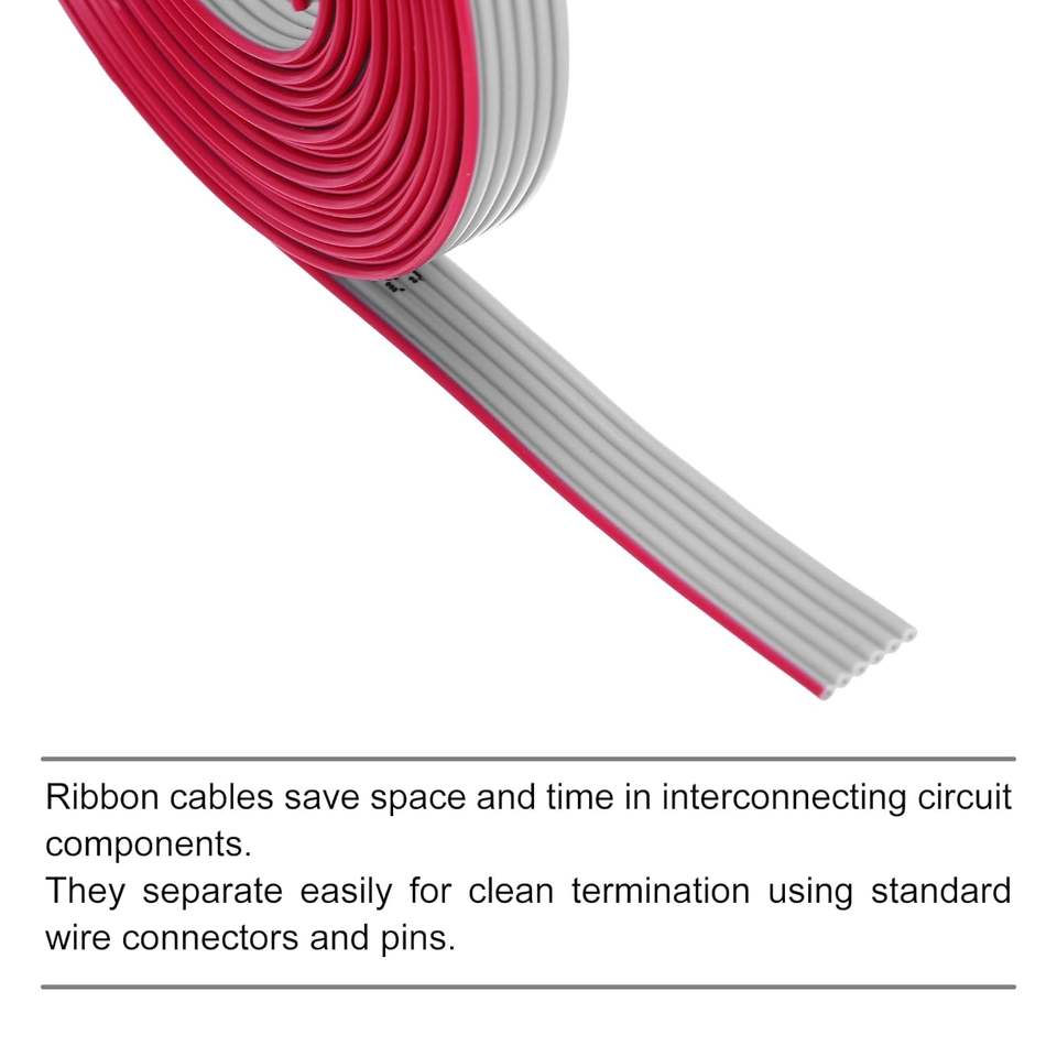 เมคคาไนซิตี้ 28awg ตัวนำทองแดงไอดีซีไวร์สายริบบิ้นแบน 3 ม. ระยะพิทช์ 1.27 มม. 6 พินสีเทาสำหรับการเชื่อมต่อเจแท็ก ไอเอสพี