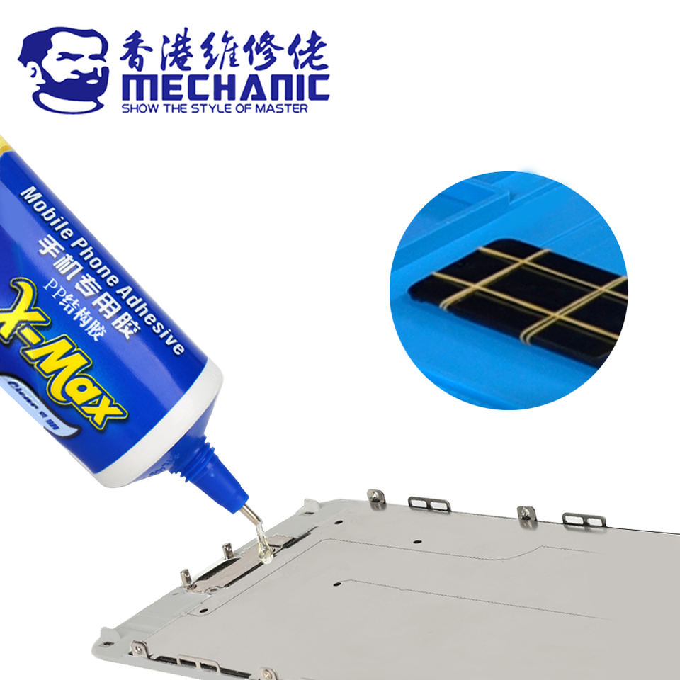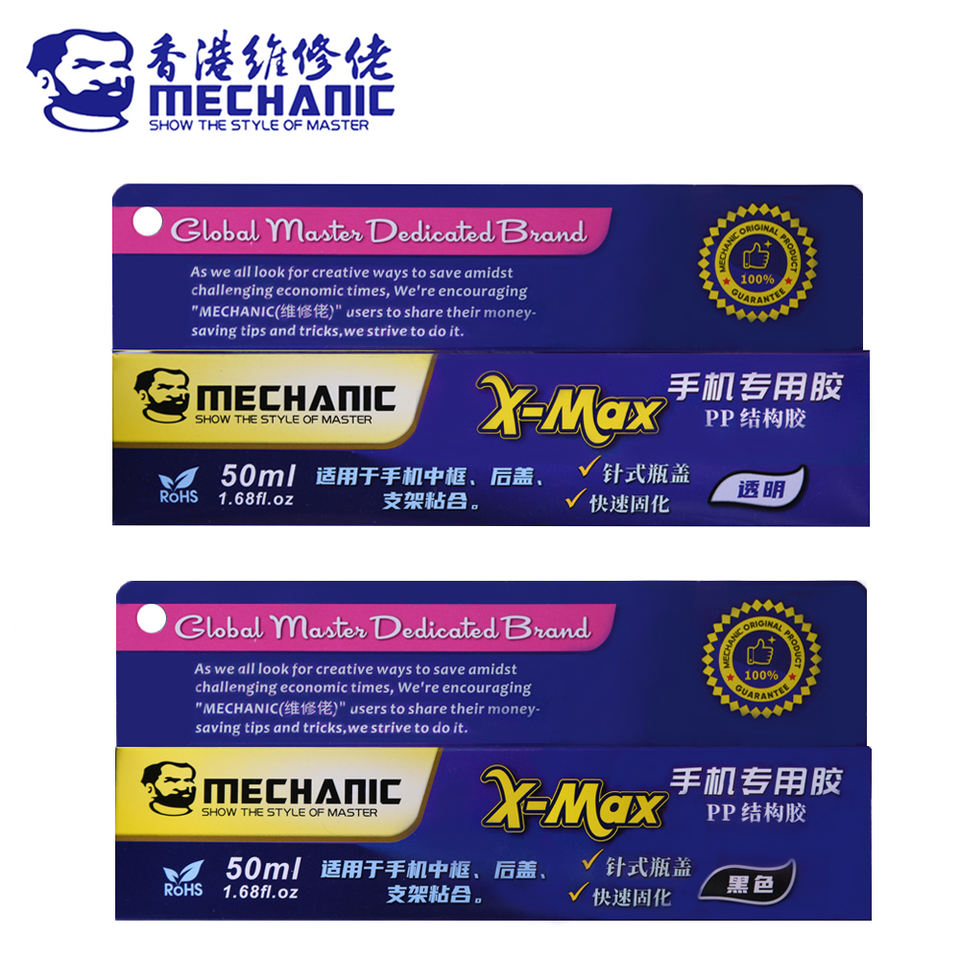 X-MAX ช่าง50มล. PP กาวโครงสร้างสีดำโปร่งใสสำหรับโทรศัพท์หน้าจอสัมผัสกรอบยึดตรงกลาง